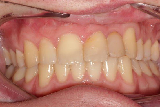 Door de tanden meer volume te geven, wordt de lip meer ondersteund waardoor deze minder hangt. Hierdoor worden de tanden meer zichtbaar en wordt ook de lip meer symmetrisch. Dit is te zien in onderstaand voorbeeld.