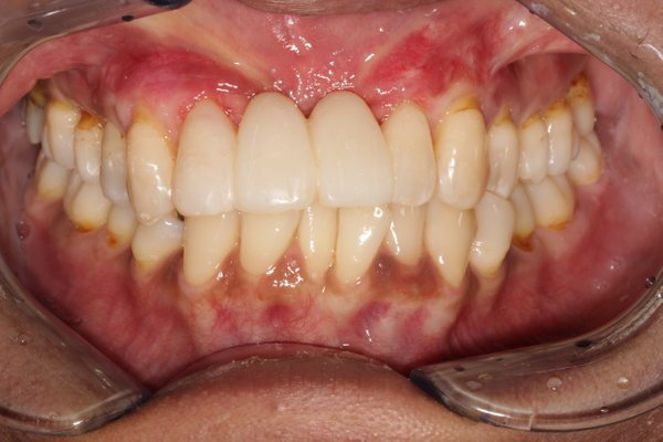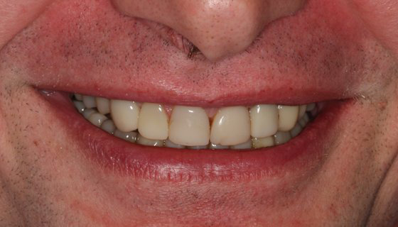 Bij deze man was zijn kroon en het stuk tand waar de kroon op vastzat afgebroken tot onder het tandweefsel.